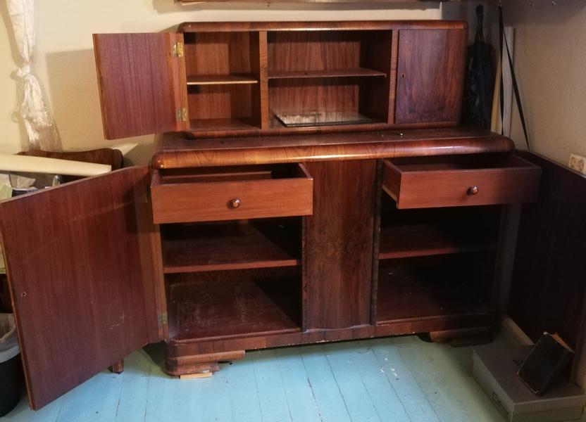 atdodu labās rokās pirmskara bufeti. Apakšējā un augšējā daļas atdalāmas. Apakšējā daļa: augst.100, plat.155, dziļ. 59; augšējā daļa: augst. 46, plat. 126, dziļ. 33.