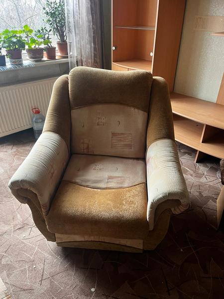 Rīga | Centrs Atdodu ilgi lietotu krēslu, ir daudz nolietojuma pazīmes un viņā apsēžoties sēdeklis nedaudz nolaižas uz leju. Polsterējums nav izsēdēts, bet audums ir redzami lietots. |