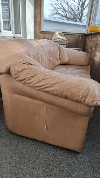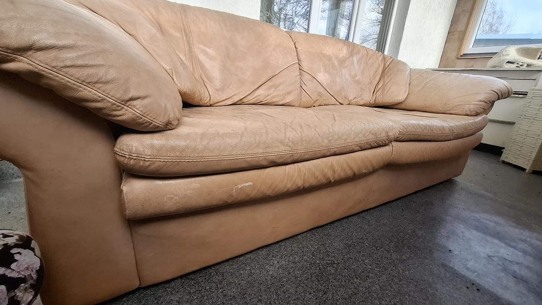 Atdodu lietotu ādas dīvānu. Ērts, bet ar nolietojuma pazīmēm (skat. foto). Nav izvelkams. Atrodas Dobelē. Pašizvešana.
