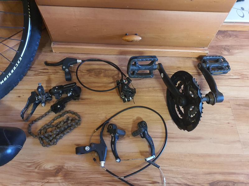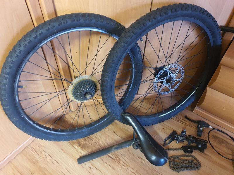 Pārdodu bērnu velosipēda 24 collas, rezerves daļas,bez rāmja. Riepa ar diskiem-17 EUR gab. utt. Zaļais ir 20 collas.Atrodas Ķengargā pie Akropoles. Varu piegādāt, jā iepriekš samaksāsiet par piegādi, drošības naudu.