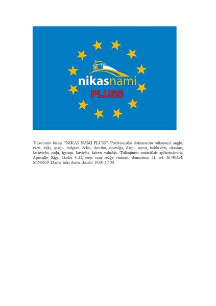 Rakstiskie tulkojumi (latviešu, lietuviešu, igauņu, krievu, ukraiņu, angļu, vācu un citās valodās). Tulkojumu notariālais apstiprinājums, tulka apstiprinājums, Apostille noformēšana. Rīga, Skolas ielā 4-31 (ieeja caur vārtiem, kods 31). Darba laiks: darba dienās 10.00-17.00.