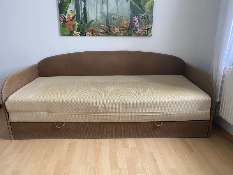 Atdošu izvelkamu dīvānu ar ietilpīgu veļas kasti. Viegli izvelkams, pilnvērtīga divguļamā vieta. Ir lietošanas pazīmes (sēdvirsmā ir “izgulējumi” — redzams foto), taču kopumā stāvoklis ir darba kārtībā, gulēt var. Pēc vēlēšanās problēmu var atrisināt ar nelielu remontu. Pašizvešana: pilsētas centrs, Tallinas iela, 4. stāvs (bez lifta). Отдам раскладывающийся диван с вместительным ящиком для белья. Удобно раскладывается, полноценное двуспальное место. Есть следы эксплуатации («пролежни» на сиденье — видно на фото), но в целом состояние рабочее, спать можно. При желании решается небольшим ремонтом. Самовывоз: центр города, ул. Таллинас, 4-й этаж (без лифта).