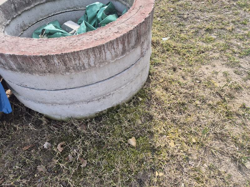 Atdodu divus betona grodus. Viens ar betina dibenu otrs bez dibena papildus ir vaks un groda gredzeni.