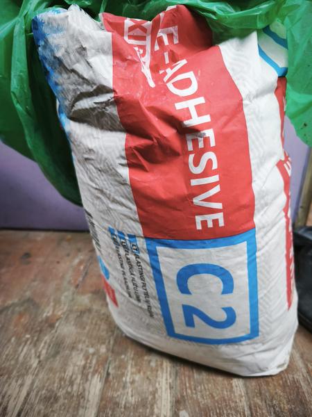 Atdodu atlikušos materiālus flīžu ieklāšanai: maisiņu ar elastīgu flīžu līmi lietošanai ārpus telpām (19 kg) un maisiņu ar izlīdzinošo javu (4 kg). Pašizvešana.