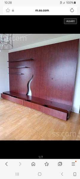 Tiek atdots viesistabas sekcijas komplekts. Masīvs,smags.Lielā sekcija no divām daļām. Katras daļas izmērs augstums 2, 54m platums 1, 84m dziļums 0, 45cm. Mazākā sekcija augstums 2, 54m platums 1 m un plauktu dziļums 20cm. Pašizvešana no Mežciema, Rīgā. Tel.26110173.