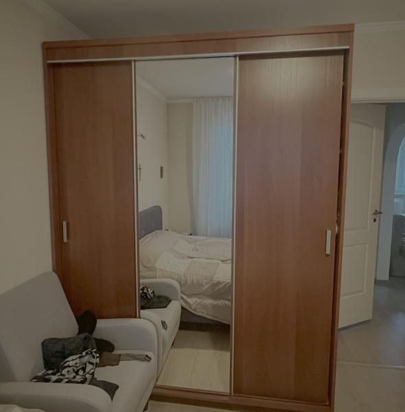 Lietota virtuves iekārta ar gāzes plīti un krāsni; skapis ar spoguli; 2 skapīši; kafijas galdiņš; koka galds ar 4 kresliem; sekcija