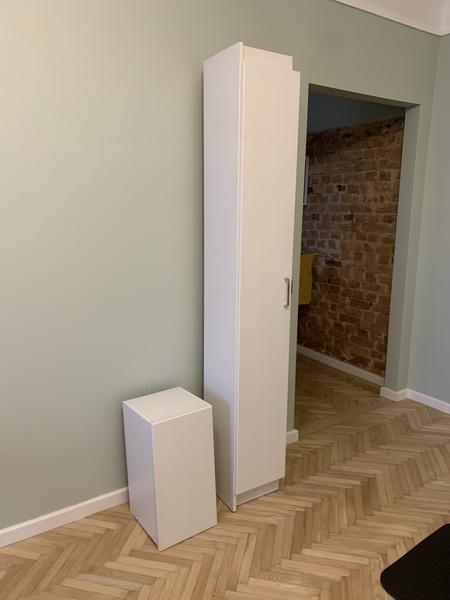 Atdodu drēbju skapja sānu korpusu. Pārvācoties uz jaunu dzīvesvietu, šim vairs neatradās vietas. Mazais skapis paredzēts virs lielā, bet var izmantot arī atsevišķi. Nelieli skrāpējumi. Izmēri: Lielajam skapim: augstums 210cm, platums 30cm, dziļums 32cm Mazajm skapim: augstums 58cm, platums 30cm, dziļums 32cm Atrodos Lastādījā, netālu no centrāltirgus.