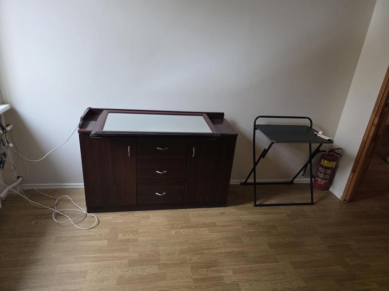Labā stāvoklī, ir arī citās mēbeles, skapi, kumode ar spoguli, rakstamgaldi un ādas divāns uz pārdošanu 200eiro