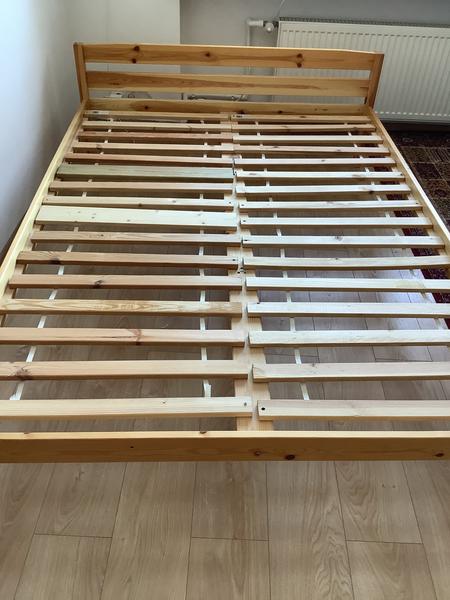 Lietota priedes koka gulta bez matrača. Platums 1,5m garums 2,0m Pašizvešana ir izjauktā veidā