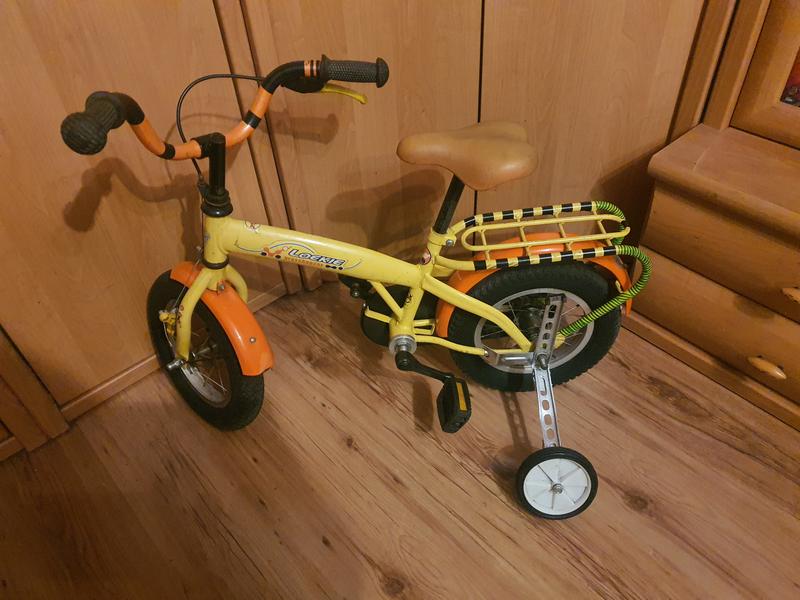 Pārdodu bērnu velosipēdu 12 collas riepām, bērniem no kādiem 2-5 gadiem ar palīgriteņiem, kamēr bērns iemācās braukt. Jā nevajag, varu noņemt. Velosipēds labā stāvoklī, viss strādā un nekustas gūltņos. Bremzes strādā ar roku priekšā, ar kāju aizmugurē. Dubļusargi, ķēdes sargs, bagāžnieks utt. Cena-35 EUR. Atrodas Ķengaragā pie Akropoles.Par samaksu varbūt varu arī piegādāt.